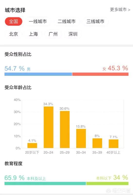02:从下面数据知道《复仇者联盟4》观看的年龄段,20-24岁占34.3%、25-29岁占30.6%,其20岁以下占4.1%,30-40岁占剩下的30.9%,相比较而言,《复仇者联盟》更受年轻人的喜爱,因为电影本身带有科幻和英雄主义的元素,更符合年轻人的口味,当然“漫迷”就更不用说了。