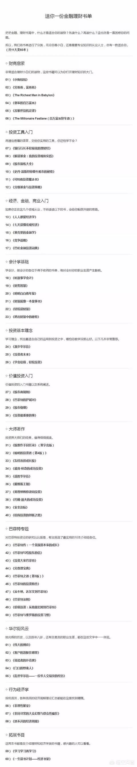 下面一张图片是一些财经类的书,还分了级别哦。自己对应自己的情况,如果你想要阅读一些财经类的,可以把这个当成书单哈,希望能够帮助到你。