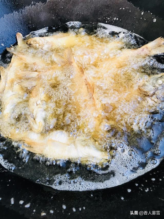 小锅起油,大火油烧开后7成油温左右将鱼放入锅中油炸,再转小火炸至焦黄即可!一道飘香四溢的油炸小鱼就搞定啦!颜色金黄又酥脆、连骨头都可以吃,骨头是最补钙。
