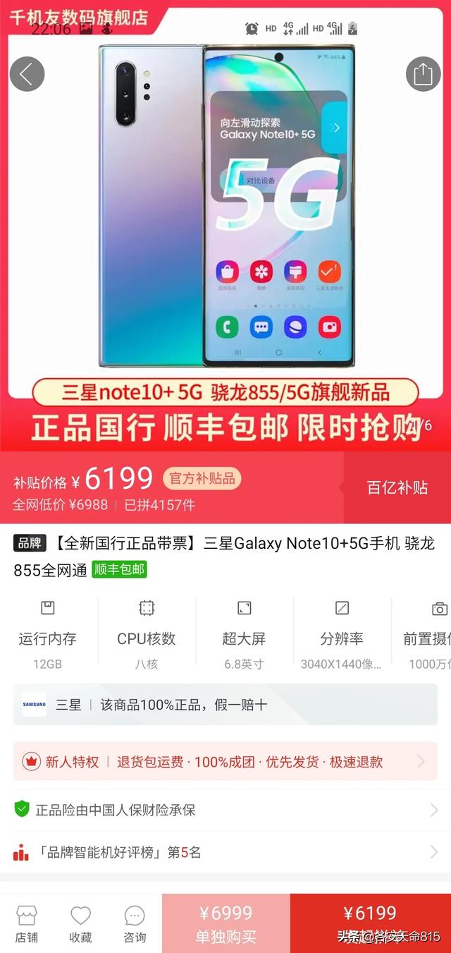 为什么某多上三星note10+ 便宜很多?有什么说法吗?
