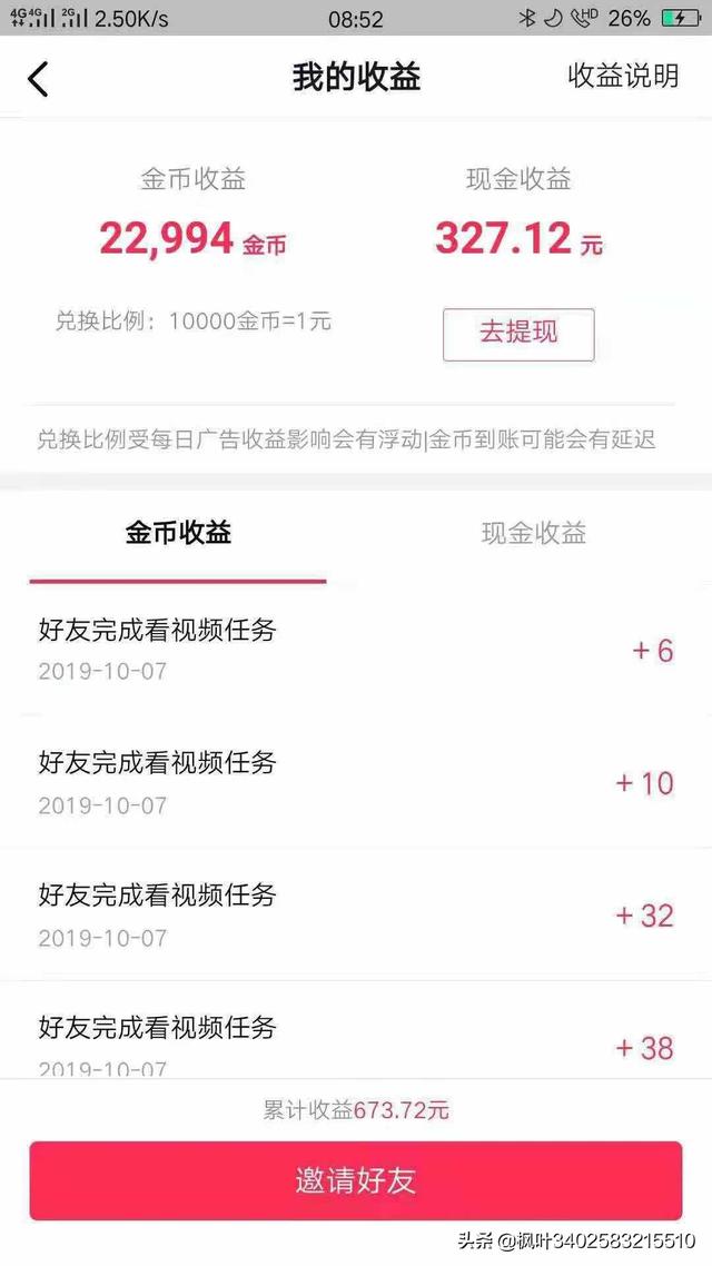 其实在家就能赚钱,并且每天可以提现,真正的0成本,只要有部手机就可以了,我现在一个月有3000+的收入。靠谱最重要,给大家推荐本人亲自测试过的,如果也想做的朋友可以在手机应用商店下载。 抖音极速版,邀请码87112535, 下载登录进去,点击来赚钱,填写邀请码,即可得4元现金,当天看视频最高可得56元 有火山极速版, 登陆进去,点击红包 填写邀请码203201018, 即可得2元现金,当天看视频最高可得32元 今日头条极速版, 登陆进去,点击任务 填写邀请码1565378601 即可得3元现金,这些软件以后使用都可得现金奖励,平均每天能得100元左右,还不错吧!没有下载的朋友们快点行动吧 一份工作的工资可能不够。所以很多人都有在做副业。现在互联网的风口到来。很多人足不出户就可以赚的盆满钵满的。