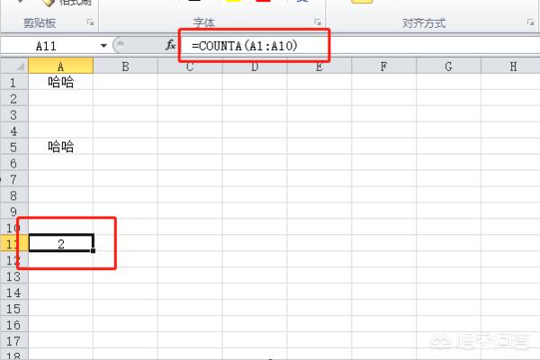 7、得到该列有内容的单元格为2,所以可以通过COUNTA函数对excel有内容的单元格进行计数。