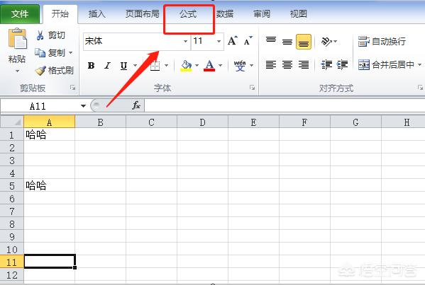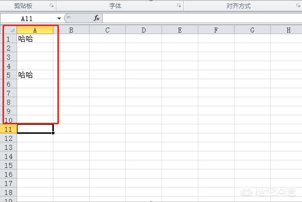 1、以excel2010版本为例,如图在A列里 A1-A10 中只有两个单元格有内容,其余均为空白单元格;
