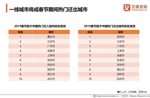 2019春运期间返乡及出行人群增多,中国国内各省都将迎来大规模人口迁徙。在一线城市北上广深,返乡打工人员规模较大,将成为春节前夕最热门迁出城市。