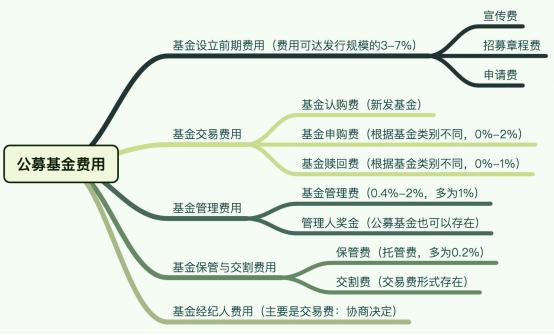 很多投资者认为,基金只有申购赎回费,那就大错特错了。投资基金的酝酿、发行、日常经营过程中,要发生各种各样的费用,这些费用均从基金投资的盈利中扣除,即由投资者来承担;同时,这些费用又分别是基金管理人、经纪人等的收入来源。