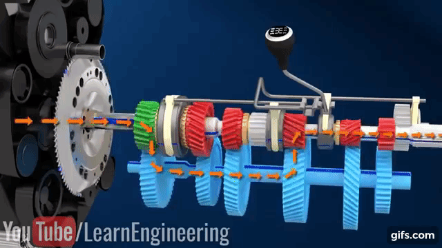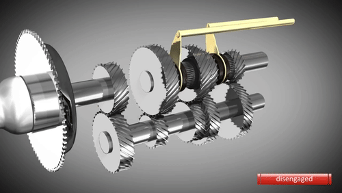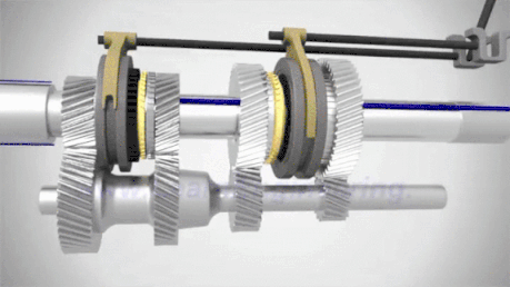 这是踩离合后的效果,实际上踩下离合器后变速箱求曲轴并不会停止,只是齿轮之间传递的动力很小,结合套可以轻松脱开。而不踩离合摘挡分三种情况: