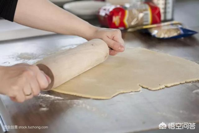 1、醒好的面那擀面杖擀成一个1厘米厚的薄片