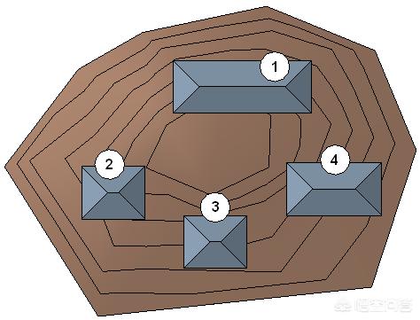 例如,下面的场地平面显示了链接到一个模型的 4 个建筑模型。