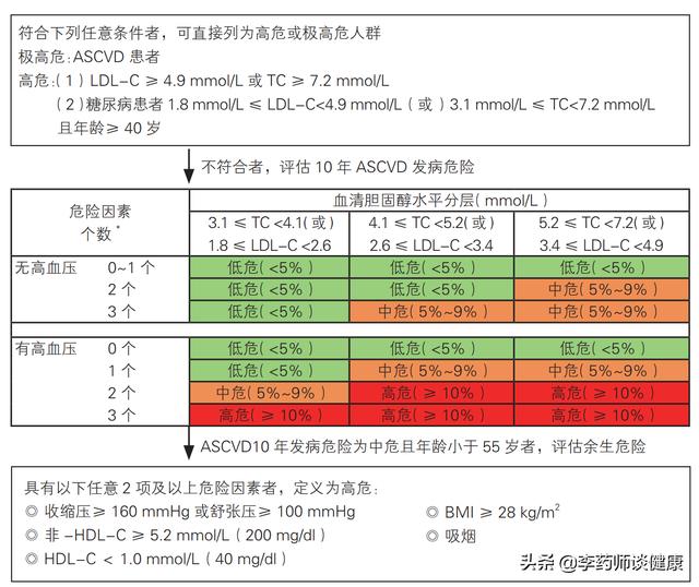 2. 无心血管疾病,总胆固醇超过7.2mmol/L,或低密度脂蛋白胆固醇水平超过4.9mmol/L,不需要结合其他风险因素评估,就属于心血管疾病的高危风险。