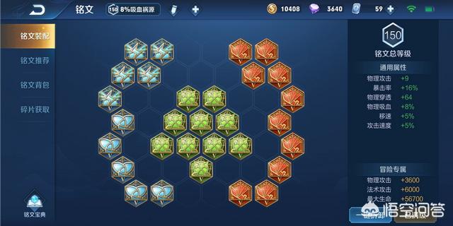 我个人喜欢用这套铭文,带5个夺萃,出了电刀、无尽、影刃、破晓之后配合16%暴击率铭文伽罗就有91%的暴击率,基本上每下都暴击。5个夺萃提供的8%吸血也能很好的续航,前期省下410的吸血剑和格子。