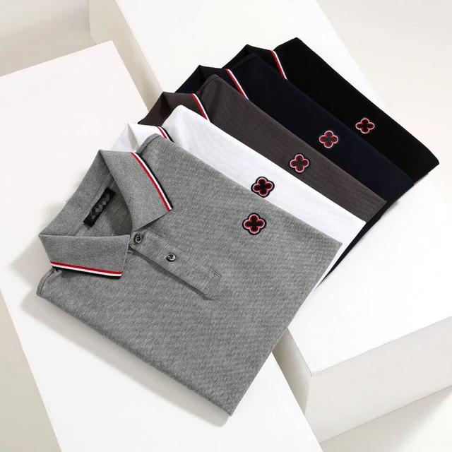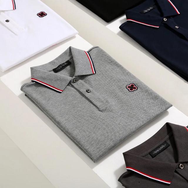 路易威登 2020AW夏季新款 温文尔雅 简约时尚商务休闲翻领短袖POLO衫 采用高克重100%丝光珠地棉面料 温儒柔软 细腻柔软 清爽自然 面料下垂感和褶皱抚平极强 上身自然是舒适 精致刺绣太阳花镶钻logo工艺设计 袖口以及衣领的嵌色螺纹 提炼看点之余 更显年轻感纽扣则是定制的珠光扣 非常的凸显整体的造型感以及修身上身感 整体的工艺车线真的是无可挑剔的 这样的一款翻领时装 无不为都市时尚人士加分 更加的绅士韵味十足范!货号:T20317 尺码:48/M-56/3XL