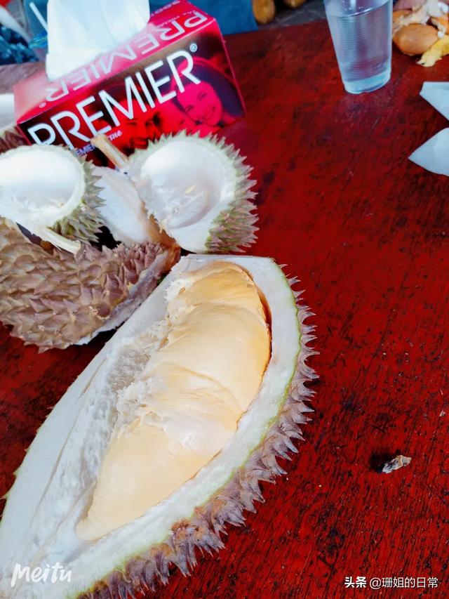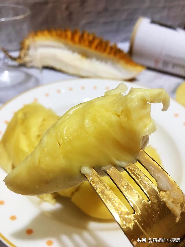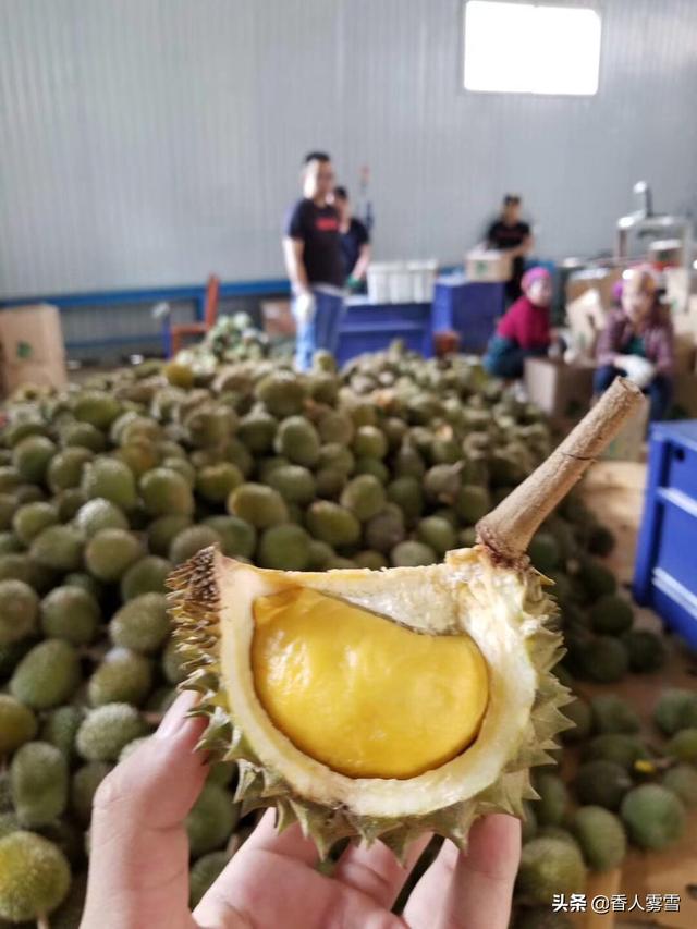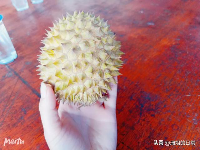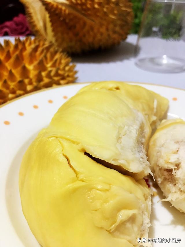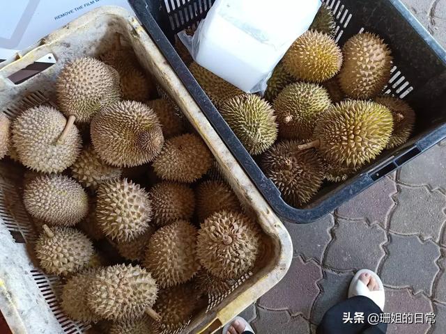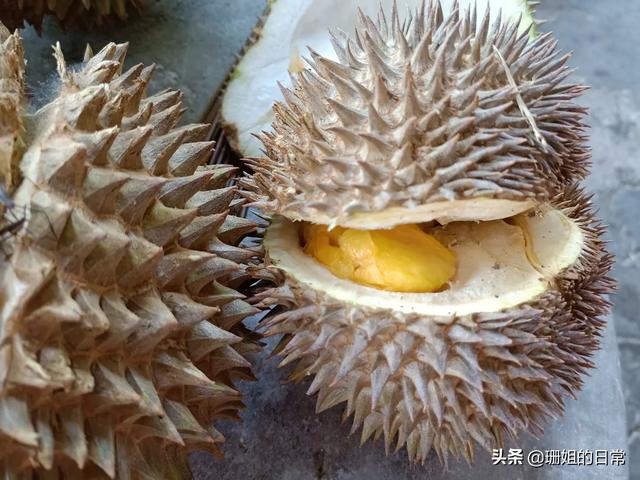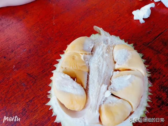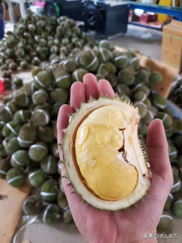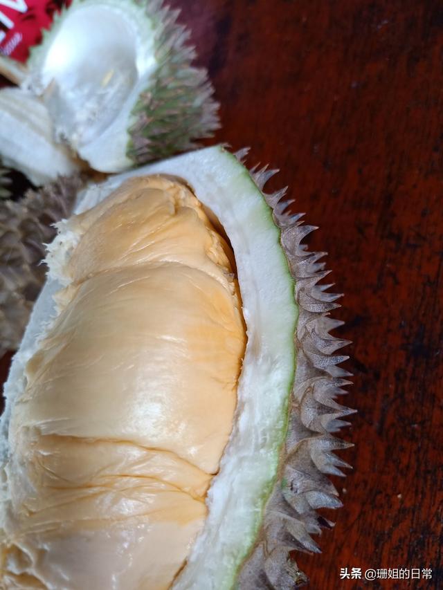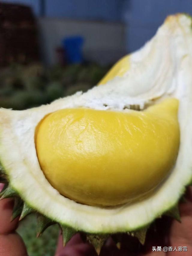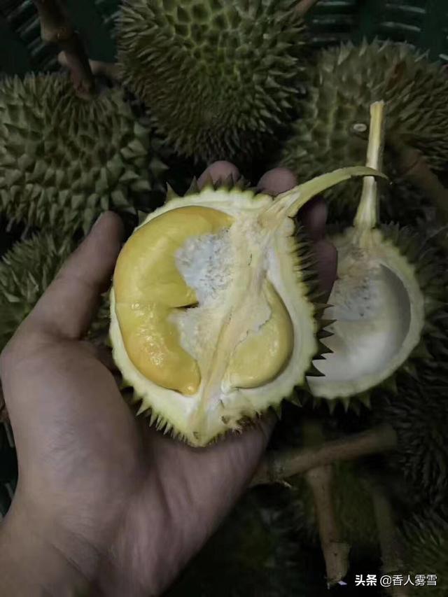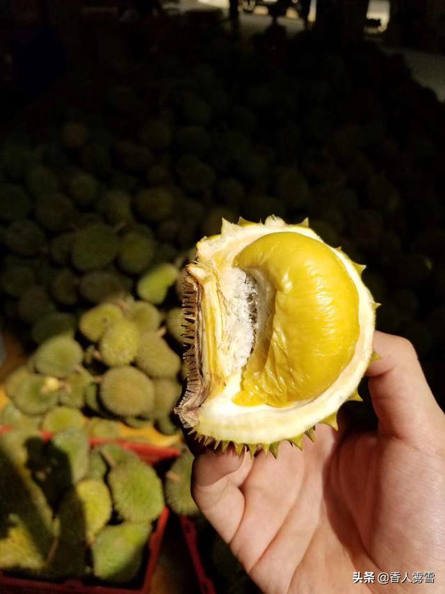 榴莲种类繁多,之所以买金枕榴莲是因为它肉厚核小,口感好。