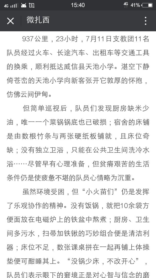 首先欢迎你来云南!来云南支教的地方多,比如云南昭通,楚雄,丽江等。云南地处中国云贵高原,西南边陲,山高路陡,多气候,多民族聚居。你选择来云南支教,你就做好最坏的打算,比如乘车是不是会晕车,,生活是不是习惯,语言勾通之类。这是支教云南昭通威信截图: