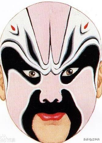 程咬金勾腰子形粉老脸脸谱,属将官类谱式。程咬金年轻时由净角扮演,勾绿色三块瓦脸谱;中老年时,则由丑角扮演。这完全是因剧情和人物的需要,按正统观念,其在瓦岗寨称帝之前是草寇且性格莽撞,因此勾绿三块瓦脸;称帝未成大统且性情懵懂滑稽,便改用了丑角。丑角老脸多用蟹形,白粉块似蟹盖,眼尾纹似蟹腿,两道白眉似蟹钳,印堂纹似蟹须,很值得玩味。