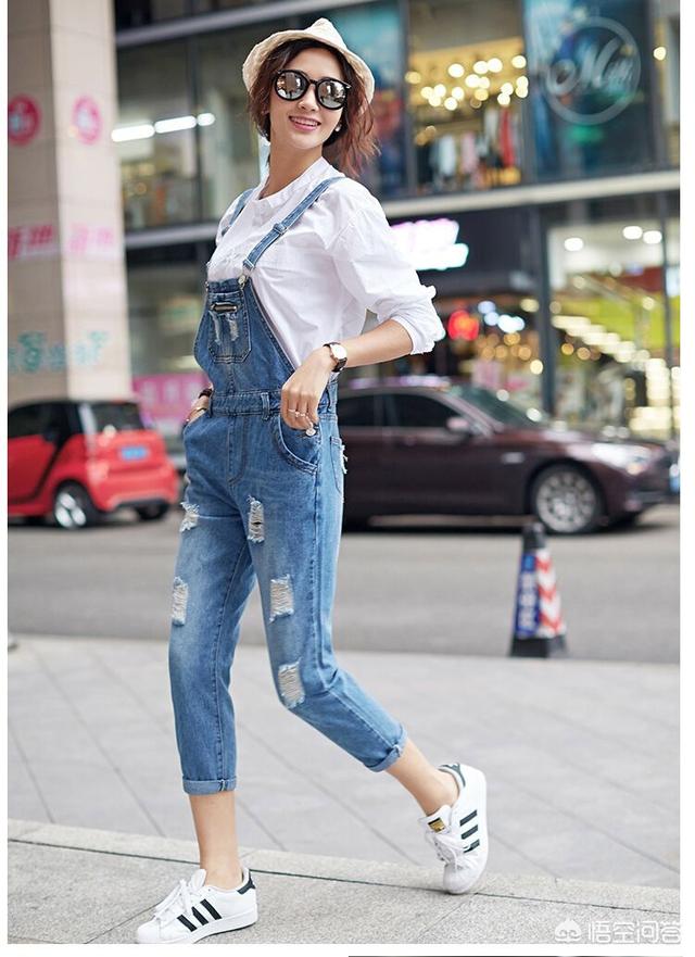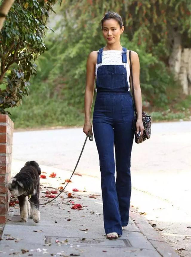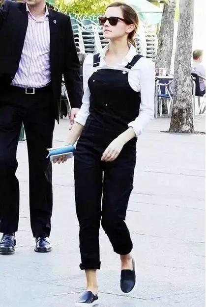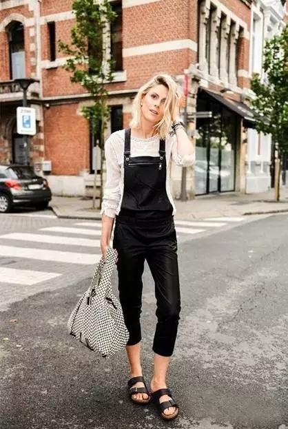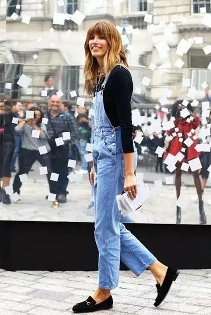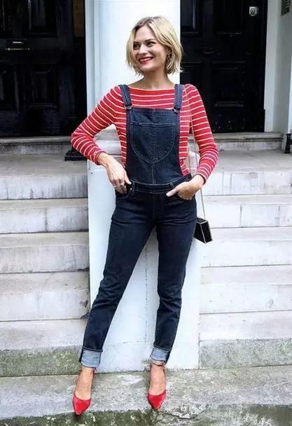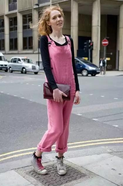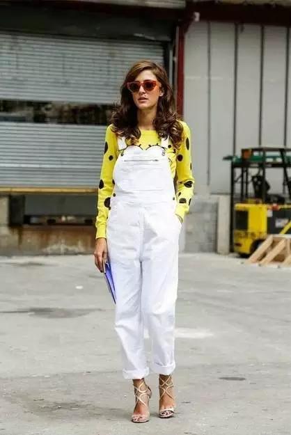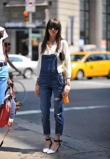 高跟鞋和背带裤也很配哦~如果将卷边的背带裤搭配一双尖头高跟鞋,即便是不足160cm的小个子,也能穿出大长腿的赶脚呢!