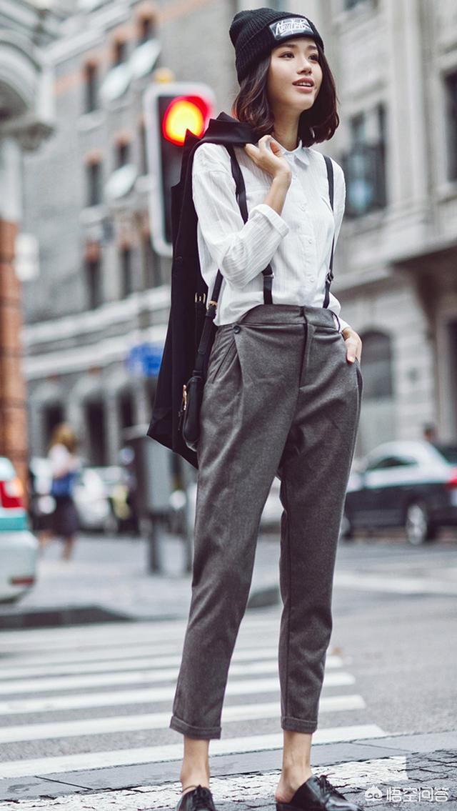 小个子穿搭背带裤的要领:卷起裤脚,或选择露脚踝的八分裤,怎么穿都很显瘦显高!