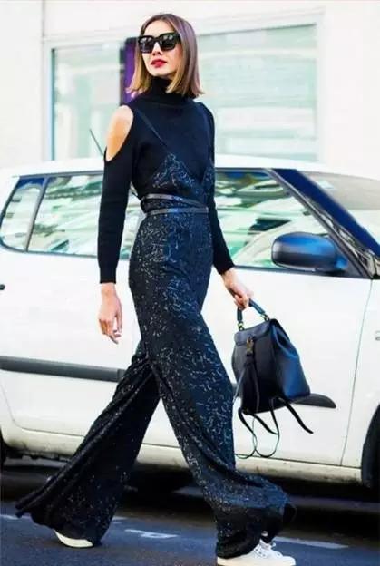 抛去老旧的观念,背带裤不仅可以搭配紧身上衣,蝙蝠衫也能穿出潮流范儿~