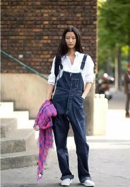 知性衬衫+背带裤,这样的穿法不仅没有违和感,反而更显时尚的先锋!