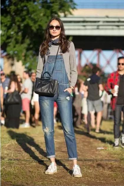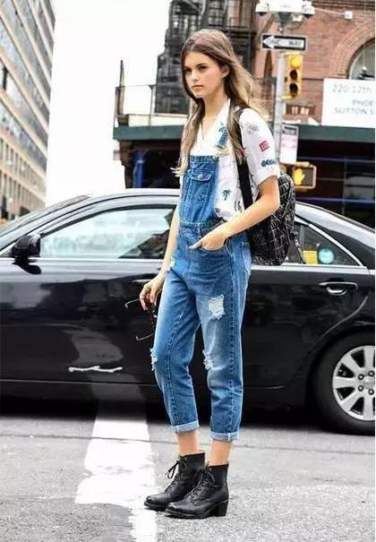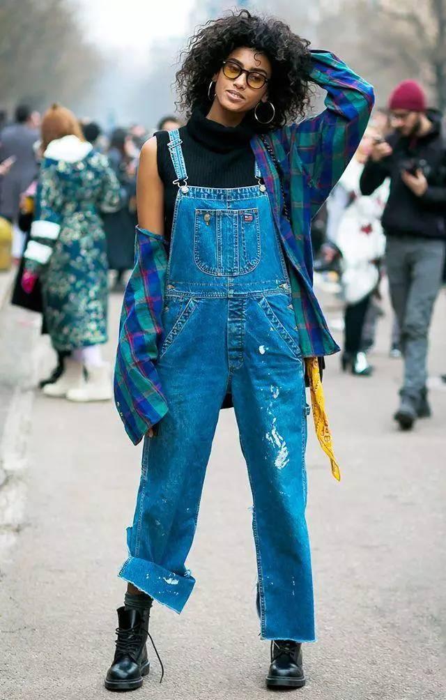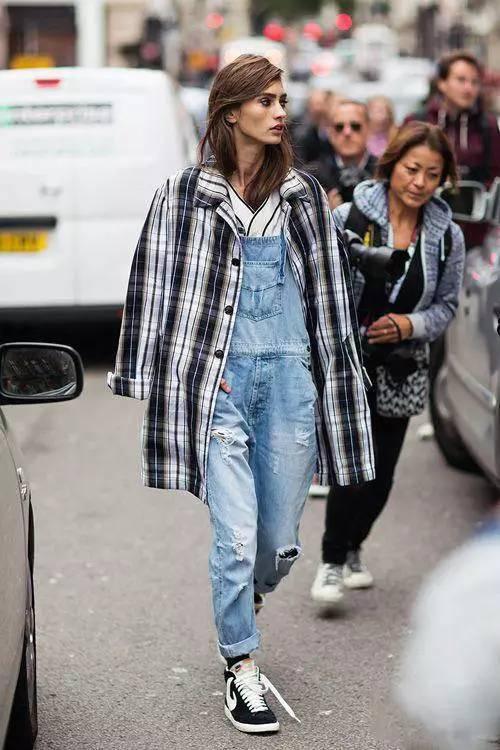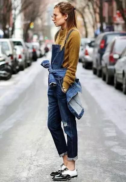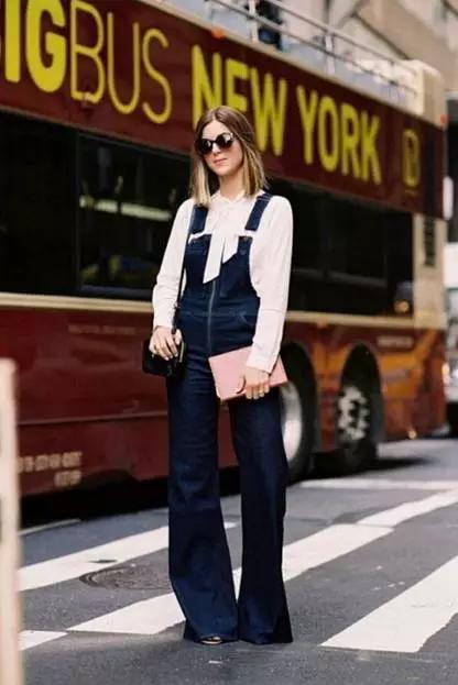 就让我们一起看看那些时尚达人的牛仔裤街拍,在秋日里是怎样搭配背带裤的吧!