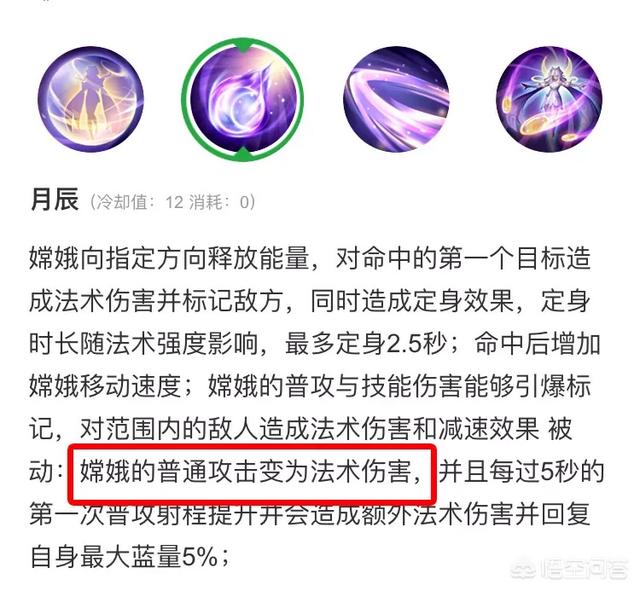 接下来我们再看一下1技能被动最关键的简述:普攻变为164点的法术伤害。我们都知道,除了触发的法术攻击之外,法术攻击是无法暴击的!也就是说当学习1技能后,普攻无法暴击了!也就是说,想打出超高暴击伤害的嫦娥,得忍得住不要点1技能!