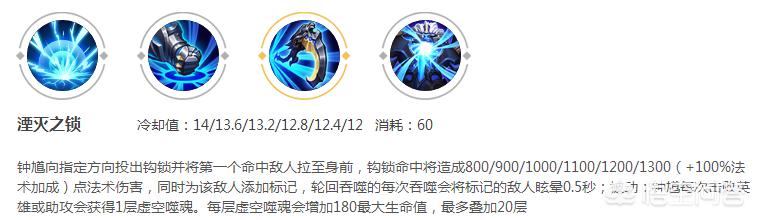 钟馗向指定方向出钩并将第一个命中的敌人拉回来,注意是第一个,也是唯一一个。两个英雄站在一起,钩子碰到谁的就会立刻触发,拉到钟馗身边。