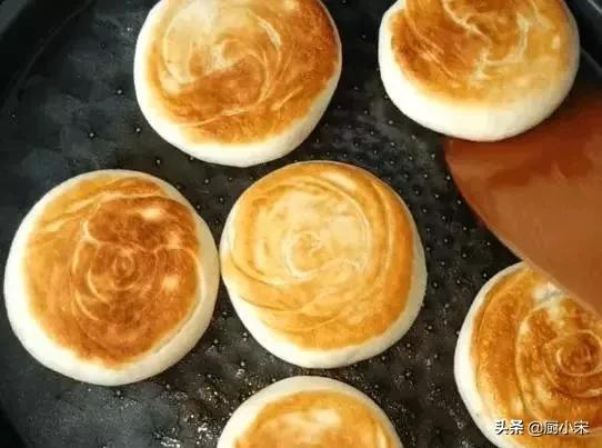 第四,首先把所有材料混合均匀,揉成面团,发酵至原体积的两倍大。发酵好的面团充分排气。分成一样大小的面团,然后揉圆。把面团按扁,然后用牙签扎上小孔(避免在烙制过程中鼓起)。锅中不需要放油,直接把火烧放进去进行烙制。一面烙至金黄后翻面,继续烙制。烙至两面金黄盛出即可。