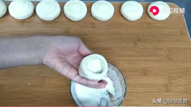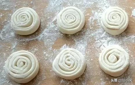 面团饧发好以后,放到案板上揉搓排气,揉几下就可以,不然面团起筋,做出的饼柔软度不好。