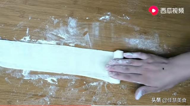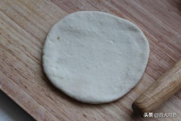 第六步 将面压扁,擀成薄饼