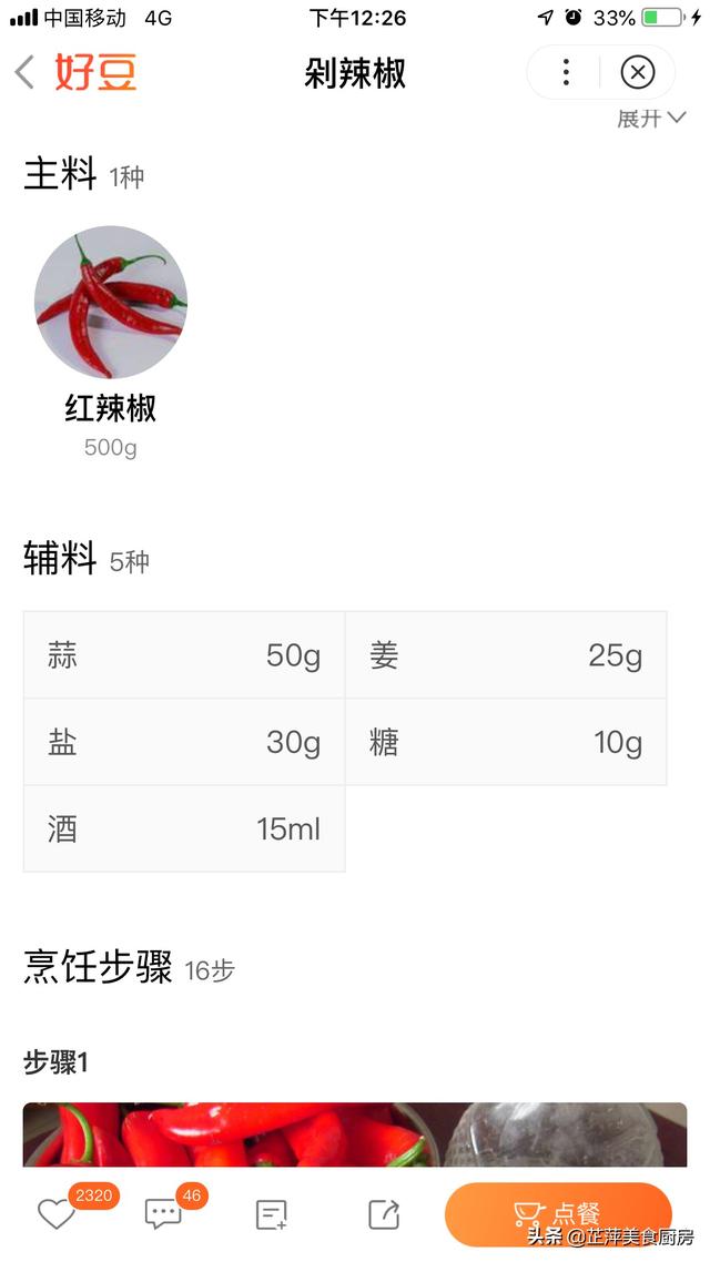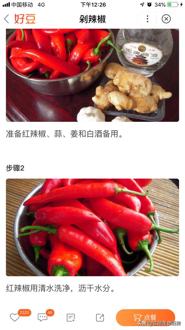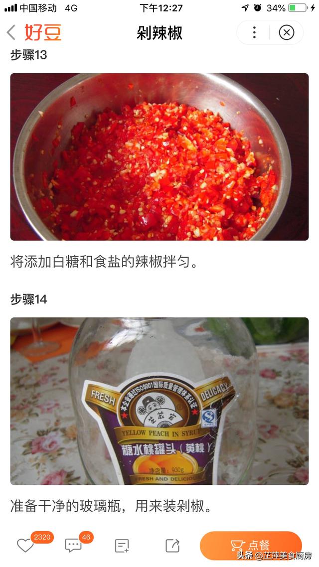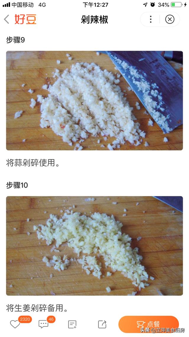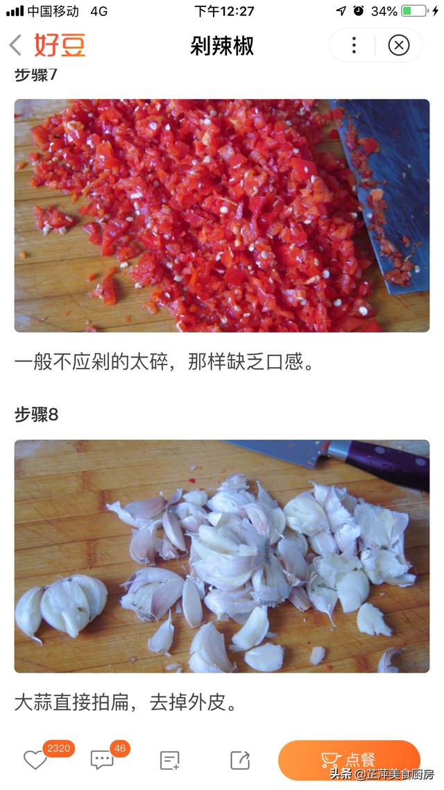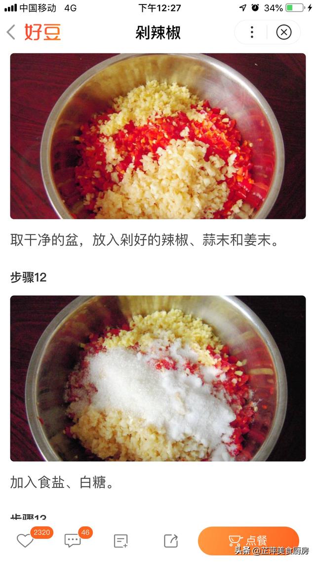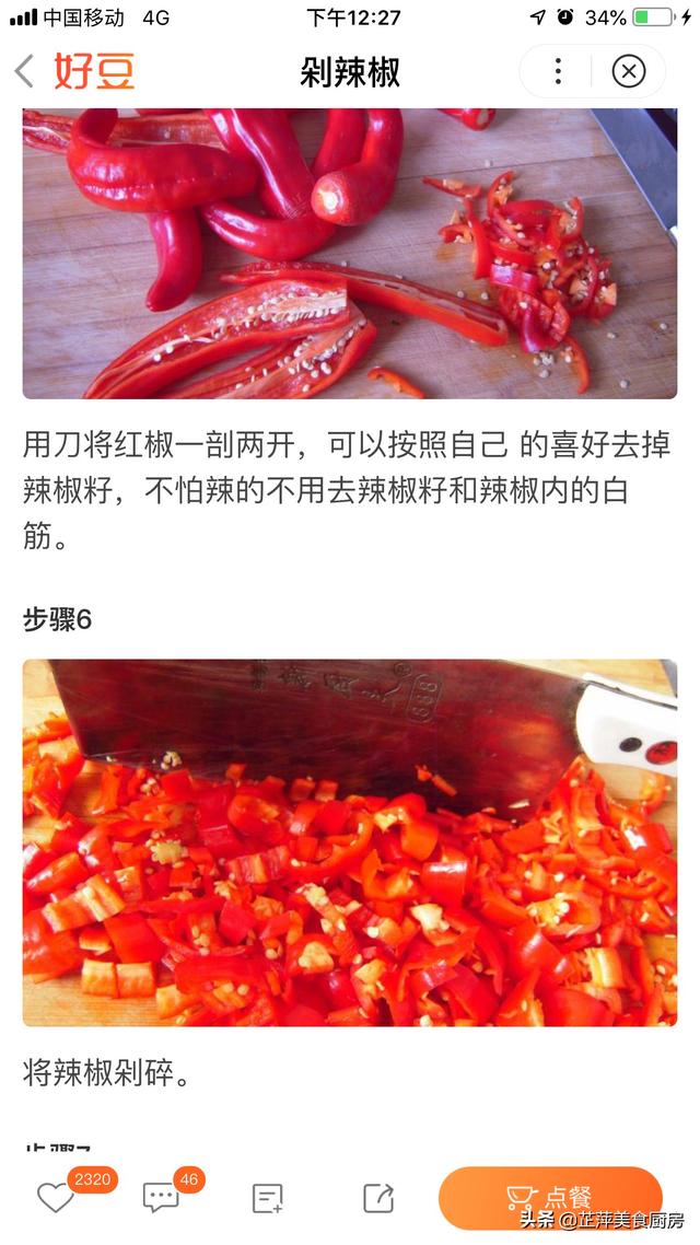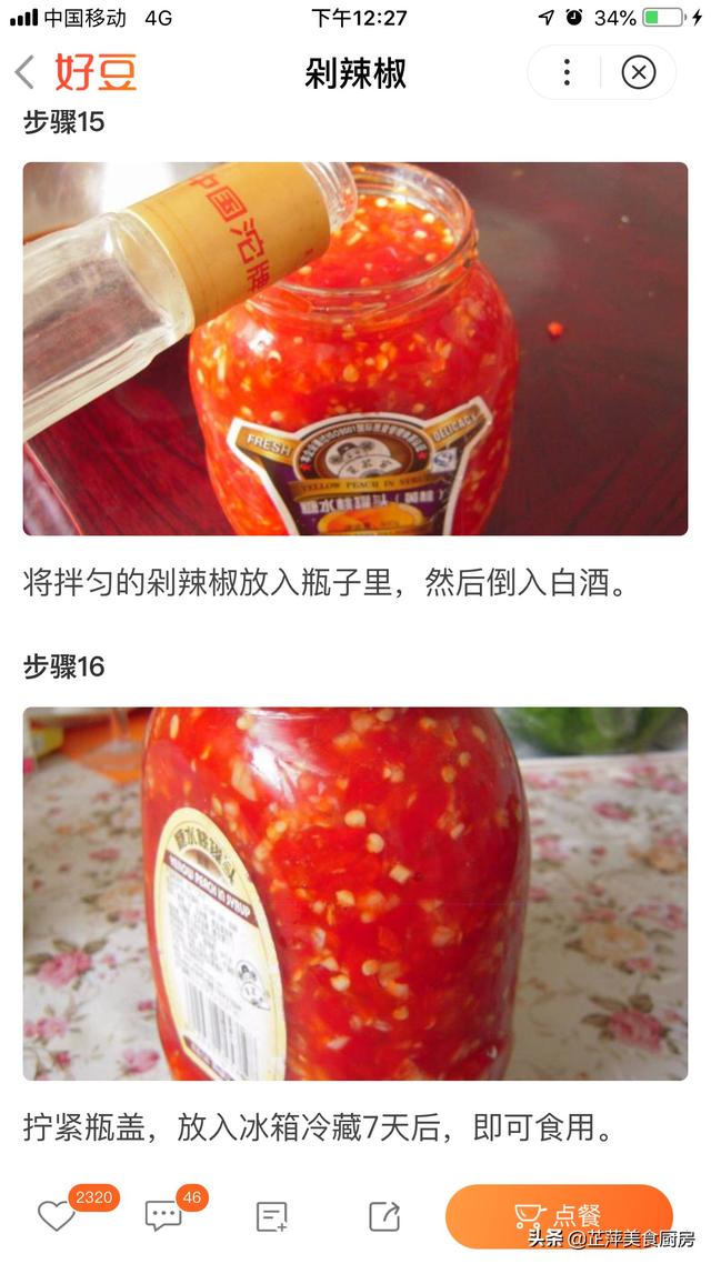 请问1斤红辣椒放几克盐做剁辣椒? spider 更新于 2023-06-10 07:26:01 全部 1016 请问1斤红辣椒放几克盐做剁辣椒? 回复 共1条回复 我来回复 芷萍美食厨房 这个人很懒,什么都没有留下~ 评论 大家好,感谢邀请,我是芷萍美食厨房,每年秋季辣椒季节必定会和季节赛跑,拼命收获红辣椒,制作各种辣椒酱和泡辣椒、剁辣椒。所以,有能力回答这个问题。时间久了,好多图片都不好找,所以把我发布的一个剁辣椒截图过来,希望能帮到您,里面有详细的配料比。盐的用量以500克辣椒配30克食盐为宜。 赞同 2019-08-25 13:45:25 0条评论 请 登录 或者 注册 后回复。