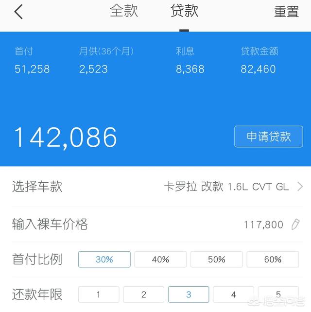 从上述可以看出,卡罗拉17改款1.6自动 GL型贷款落地价为130086元,月供2523元。不过具体的优惠力度和保险内容还要以当地4S店为准,应该差别不太大,只供参考!