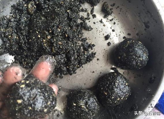 4、把猪油很黑芝麻粉一起揉成团,黑芝麻馅就做好了。
