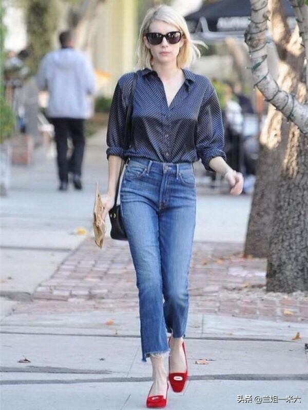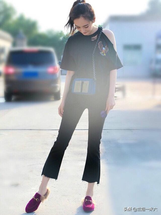 2、Mother牛仔裤,很多明星都在穿,她家的微喇叭裤型超好穿,显腿直。