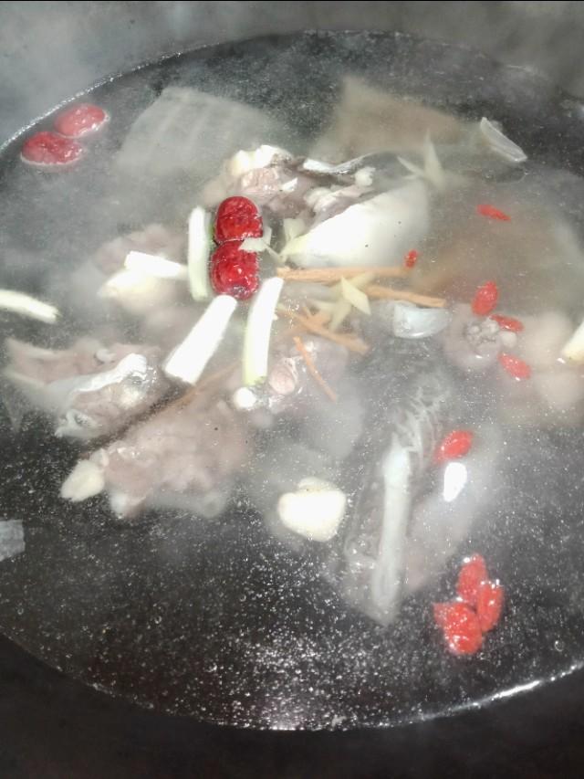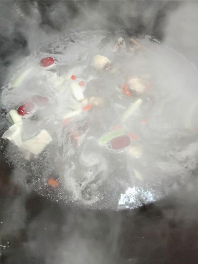9、挑出姜片,加入适量的盐、枸杞,再中小火煮5分钟即可。