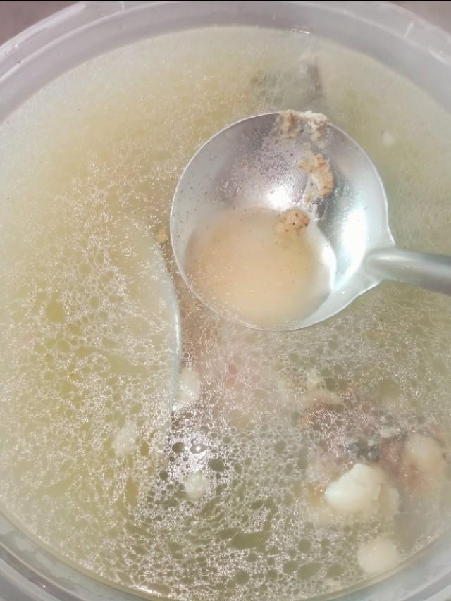 炖汤时中间要清理一下表面的沫子,检查一下汤的多少,防止火大糊锅了。