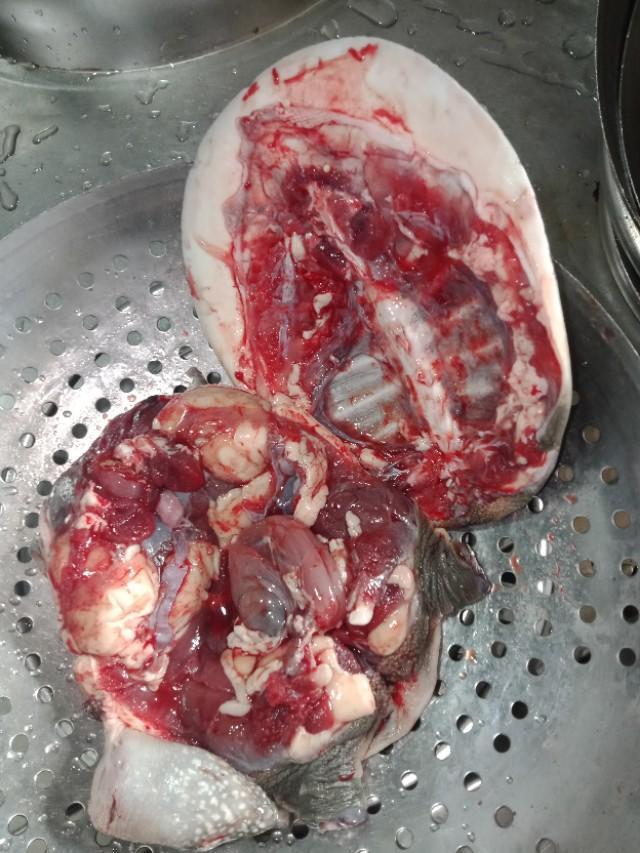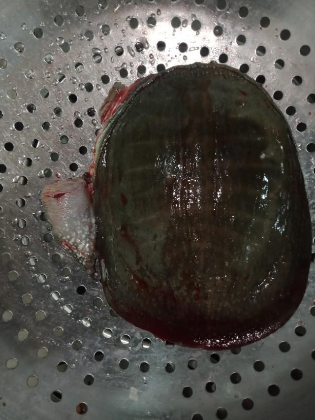 ⑵:甲鱼的尾巴部位和指甲,也就是甲鱼的生zhi器,宰杀后直接用剪刀去掉。