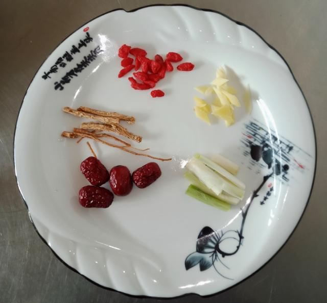 甲鱼1只,姜5片,葱5段,红枣4粒,枸杞子10粒,党参2条