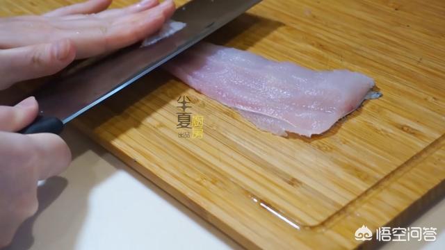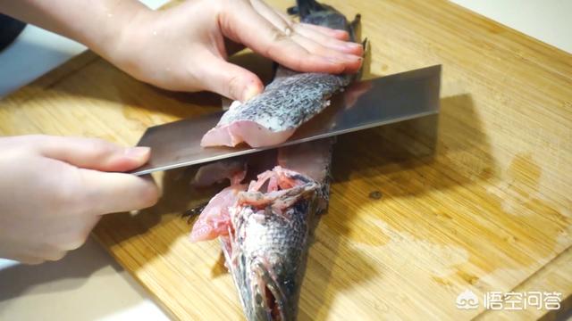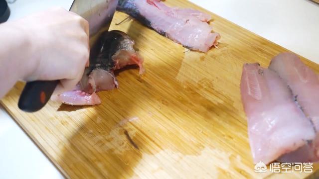 注意只片下鱼肉,鱼皮不要切断 (鱼皮和鱼骨一些留下做汤)