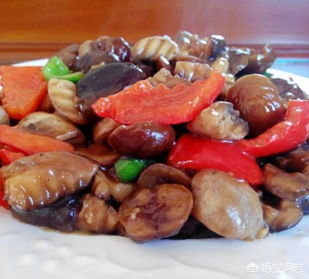 我比较喜欢生吃栗子,把栗子放到太阳下晒一两天,晒至微软,轻轻一捏壳就开了,吃起来香甜可口。栗子被称之为“干果之王”,栗子不仅味道鲜美,而且营养丰富,富含维生素C、钾和铁,能健脾养胃、强筋骨、抗衰老、更能促进血液循环,而蘑菇又富含营养价值,两者搭配起来,又是一道美味的佳肴。