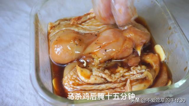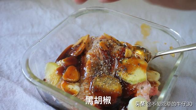 1、先腌制鸡腿肉:鸡腿肉去骨十一丟丢盐十小半勺黑胡椒十1勺料酒十半勺食用油轻翻均匀放冰箱腌制4小时以上,使得鸡腿充分入味