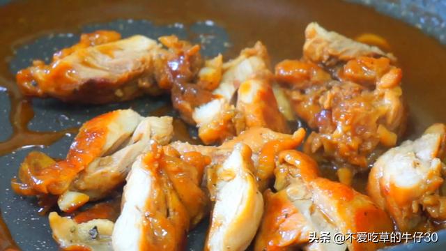 2、淋入酱汁之后可以多翻几次面,让鸡腿肉裹满酱汁,汤汁不要收的太干,留些汤汁拌米饭