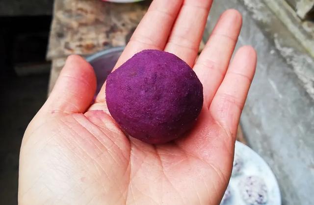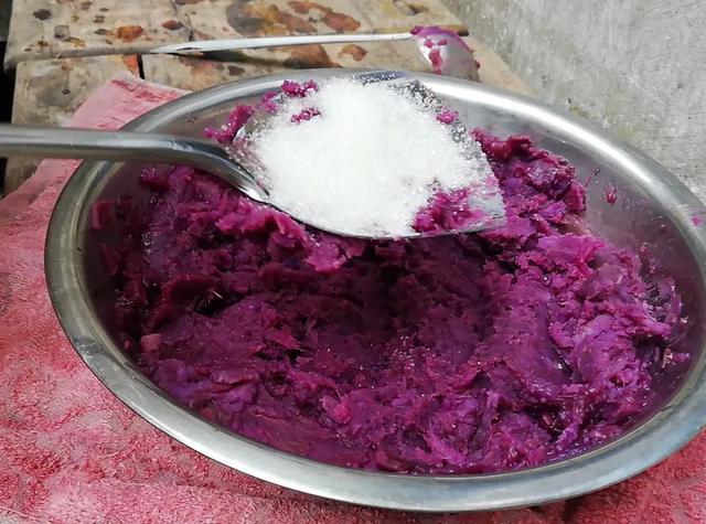 蒸耙的紫薯,再捣泥,要趁热加白糖哦,凉了糖不融化