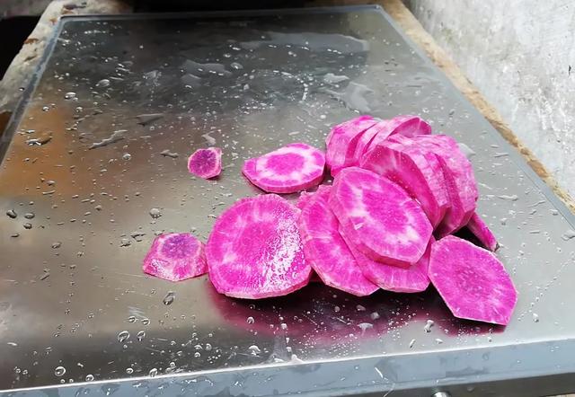 把紫色削皮,再切片