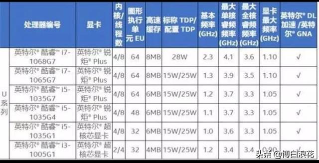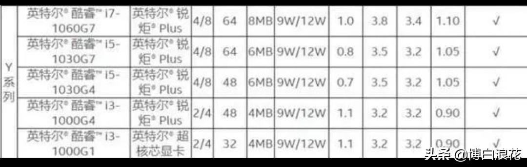 第十代酷睿Ice Lake处理器总共包括11款,其中U系列有6款,Y系列有5款。