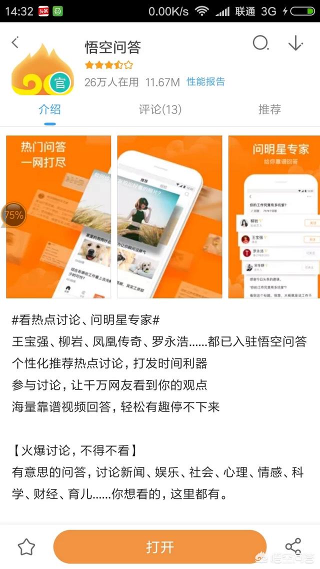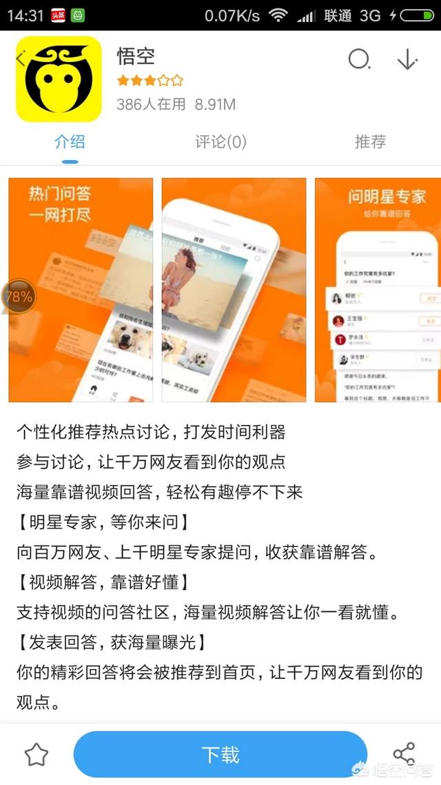 悟空APP并不太熟悉,于是在软件园里恶补了一下。悟空是以视频的形式出现问答类APP,也是由网友和专家参予发布。去年年底才登录,参予的人近400人,时间短影响力小,尚未形成规模,并未得到公众的熟知,是一个正在萌芽成长的软件。