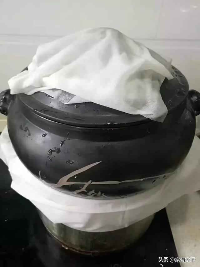 - 将长高蒸锅放在汽锅适当的口上,用加足量的水,毛巾密封,用大火蒸三四个小时,汽锅会慢慢析出鲜汽汤。下面的蒸锅要注意看火,小心干烧,适当的时间加水,以利于长时间产生蒸汽。