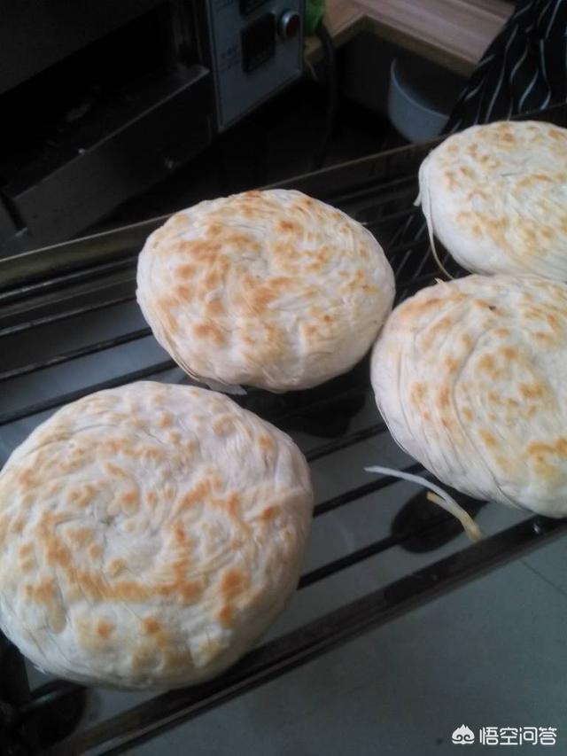 12、烤箱200度预热,烤七八分钟左右就可以了 烤箱这步也可以不用,电饼铛直接烙熟也可以 烤过的饼,皮会更酥,颜色更好。只用电饼铛,颜色会很苍白。