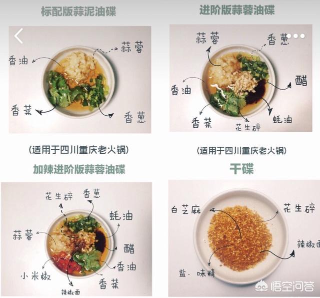 加辣进阶版蒜蓉油碟:蒜泥➕香菜➕香油➕香葱➕蚝油➕花生碎➕辣椒油➕小米椒➕陈醋