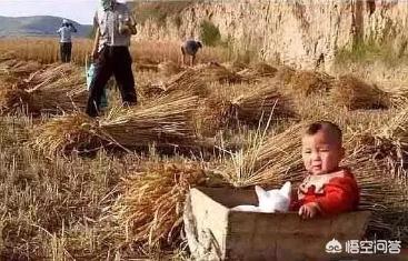 在八十年代时,我们生长在农村的孩子还是每天放学回家后要去地理除草、挖地、割草喂牲口。那时没有手机,最好的家庭就是有台电视,还是黑白的,一般家庭是没有的,对一般家庭来说就是奢侈品。孩子们闲暇时的玩具就是火柴盒皮,玻璃球、废弃的车轱辘、棍棒等。当时的零食很少,就是桃酥,饼干,冰棍,蛋糕,品种很少。平常的日子大人是不让吃的,只有过年时才给几个,那时感觉幸福极了,所以孩子特别盼望过年。只有过年才能吃几块饼干,穿件新衣服。说是新衣服其实有时是大人的旧衣服改的。再说当时干农活的情况:原来干农活全靠人们的双手和牲口,割麦子割谷子全是人们用镰刀一把一把地割倒,然后在用马车或牛车拉回家。全部拉回家里的场里,在用牲口拉着碌碡碾压,然后在通过扬场把谷粒或麦粒收起来。在场里干活既累又快乐,可以从图片里看出来。