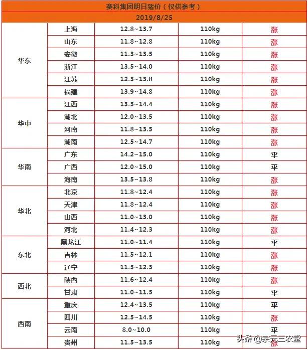 下图为今日我国各地生猪价格表,可供参考: