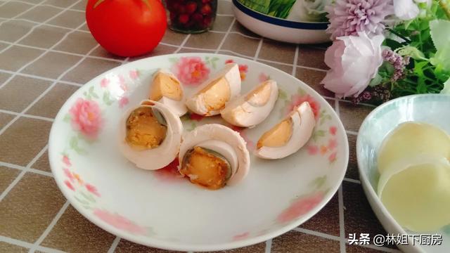 我自己家吃都不会这么讲究,就是鸭蛋的一头一磕,剥去顶部的一圈,然后用筷子挖着吃,因为咸鸭蛋里有油,这样不容易撒出来。如果是有客人,可以把咸鸭蛋一分为二,在盘子里摆一个好看的形状,也是不错的选择。